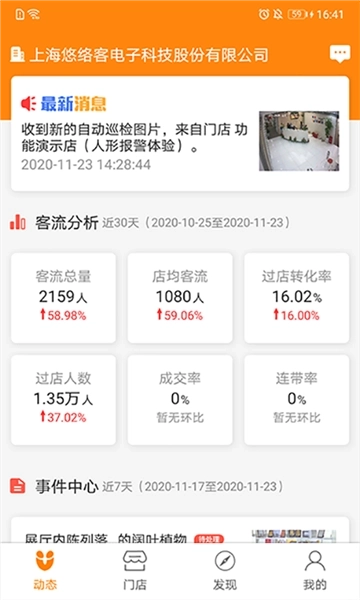 悠络客是上海悠络客电子科技股份有限公司开发的一款智能摄像头平台,通过这款应用可以帮助各位企业降低运营成本,提高管理的效率,还能保证店面安全。在悠络客中,我们可以随时随地打开摄像头查看店面的信息,把原本需要线下管理的工作放到线上,让管理者变得更加轻松,实现门店的智能化管理,如果你有需要的话,那就赶快试试吧!
