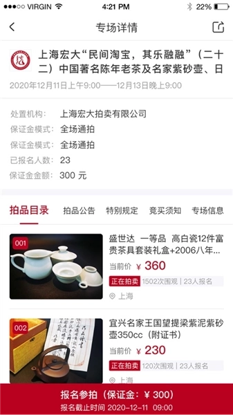 各种拍品的图文介绍十分详尽全面,用户可以随时在线了解到详尽全面的拍品信息。