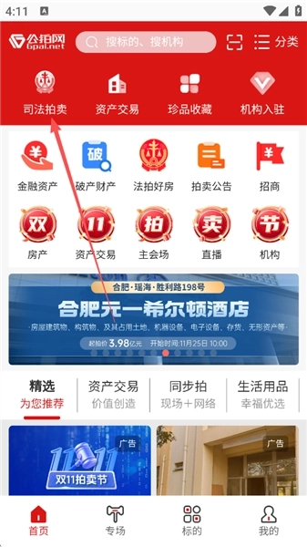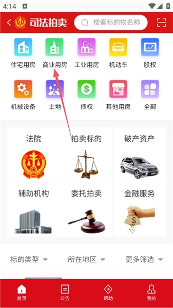 1、打开软件,注册之后,点击【司法拍卖】