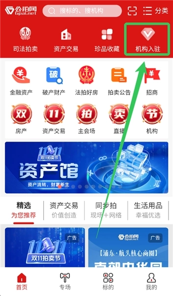1、登录后再填写入驻资料会更好,在首页点击最上方最后一个【机构入驻】。