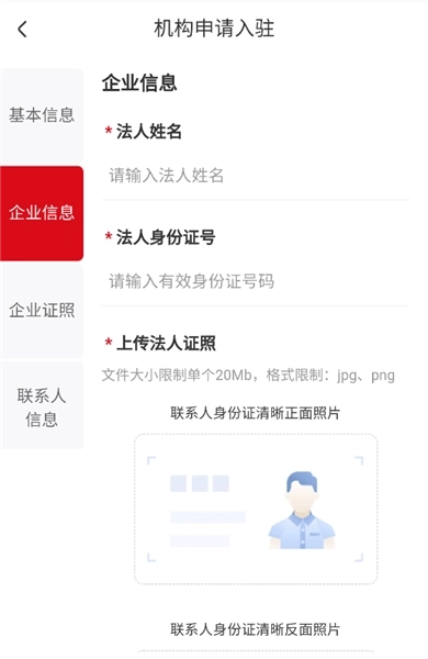 3、然后输入法人的姓名、身份证号和照片,以及公司的社会信用代码等。