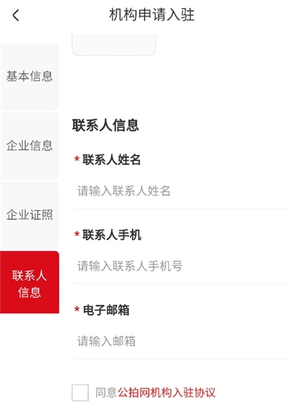 5、最后就是输入联系人的姓名,手机号和邮箱。前面标注了红色星星的都是必须要填写的。