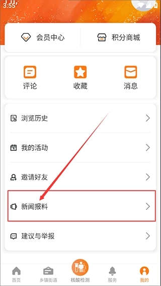 2、在个人信息页面,找到“新闻爆料”功能,点击进入;