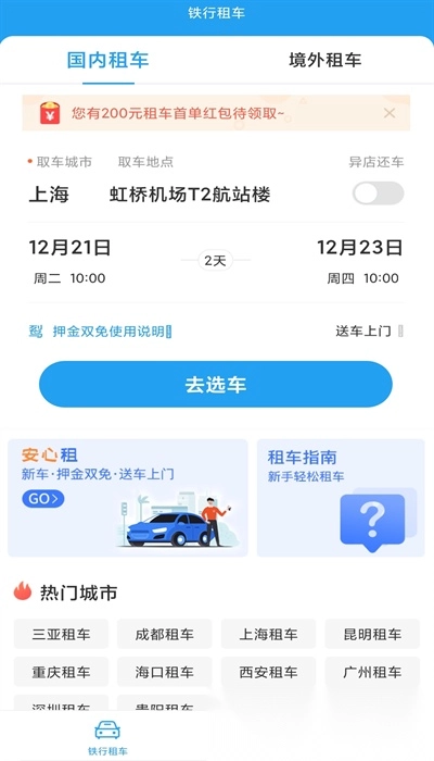 铁行租车是一款功能完备的线上租车应用,设有多样化的服务入口,可满足用户各类租车需求,实用性突出。平台车辆款式丰富,涵盖不同车型与价位,搭配专业的客服支持及灵活的租购方案,为用户提供便捷高效的租车体验,感兴趣的用户不妨一试。