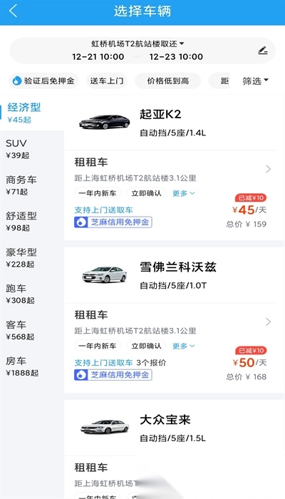 2. 与多家租车平台合作,车型丰富,优惠真实;