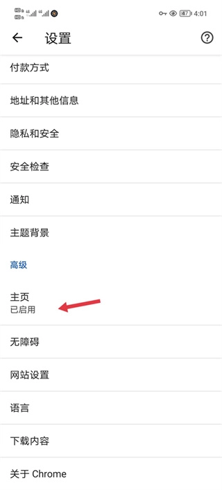 在设置页面找到【主页】功能