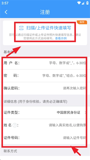 4.进入注册界面后,既能够借助扫描或上传证件的方式来快速填写信息,也可以依照要求一步步地完成信息填写。
