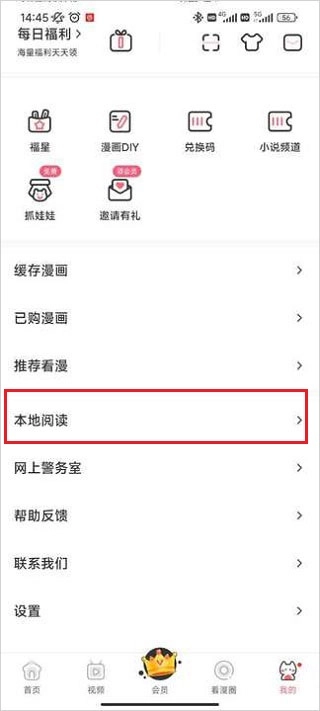 2、滑动屏幕,找到并点击“本地阅读”,即可进入。