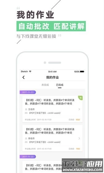 作业模块显示待完成和已提交两种状态标签;