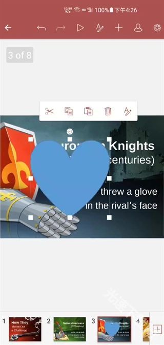 在安卓设备上制作和修改出亮眼的演示文稿,可以管理幻灯片,插入图片,添加并编辑形状、图表、图形以及文字等内容。