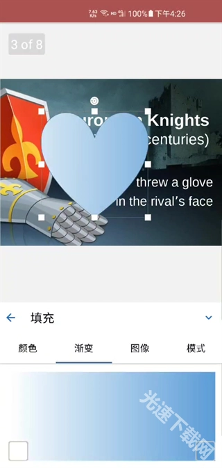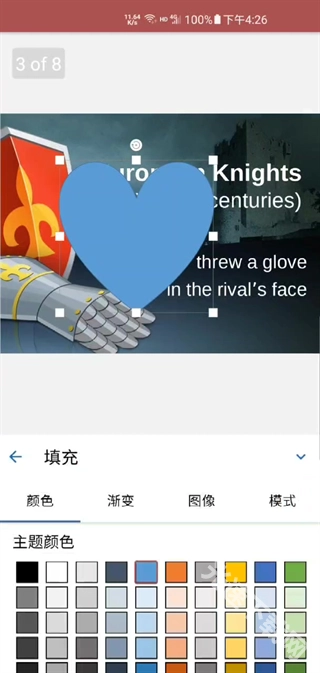 上方采用单色填充,下方则运用渐变色彩,同时还兼容图像、纹理等多种填充形式,如今电脑端幻灯片所具备的各类填充方式,在手机端也都能够实现应用了。