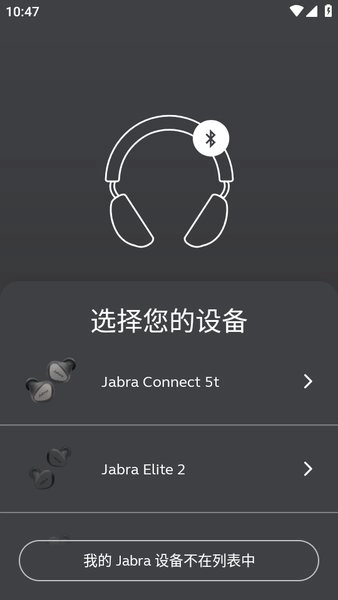 若系统没有自动识别设备,您可以手动挑选设备型号,也能在“我的Jabra设备不在列表”里查找对应的机型。