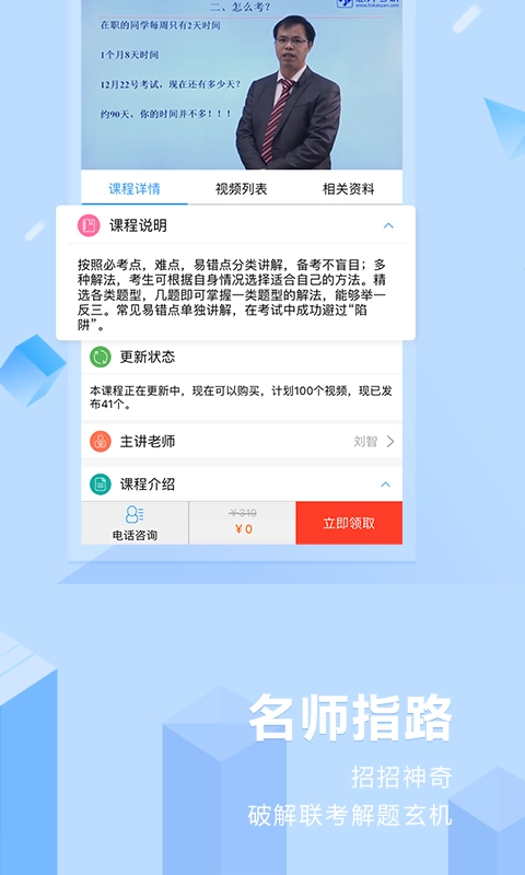 主讲教师都具备5年以上的联考辅导经验,课程时长平均控制在25分钟以内。