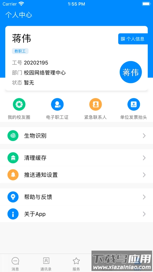 教务系统具备成绩查询与课表查看功能;学工模块可进行日常签到与活动报名操作;后勤服务涵盖宿舍维修与设备报障服务;财务功能支持校园卡流水查询与充值记录查看;图书馆系统能够检索藏书信息与办理书籍续借;校友圈允许用户分享校园动态与活动照片。