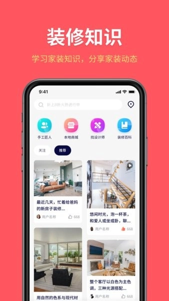 平台整合了本地实体商城的家居商品资源,覆盖建材、家电、软装等品类,会定期推出限时折扣活动;用户能在线学习不同户型的装修经验,平台还提供免费的户型设计方案以供参考,真实用户的案例视频也可随时查看。