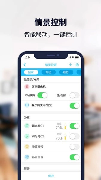 2. 自定义情景模式,回家自动调节灯光空调;