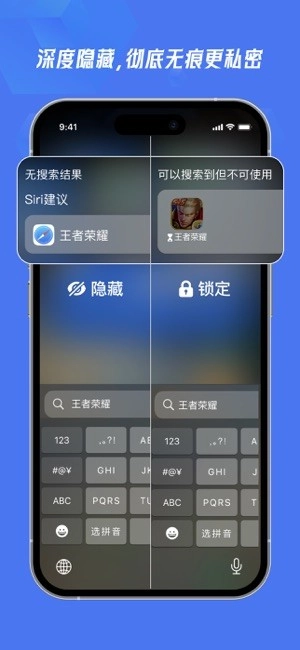 深度隐藏功能可使应用图标在桌面隐匿,同时同步清除相关搜索记录;