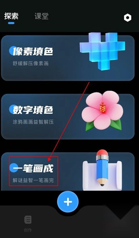 用户在本站打开软件后,点击底部的“发现”,接着选择“一笔画成”功能。