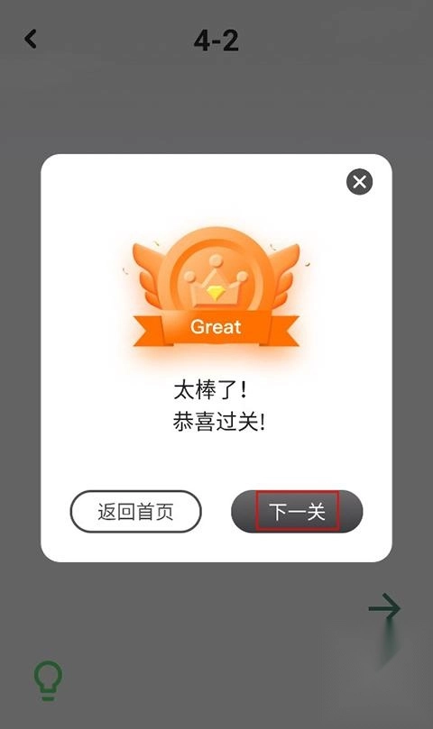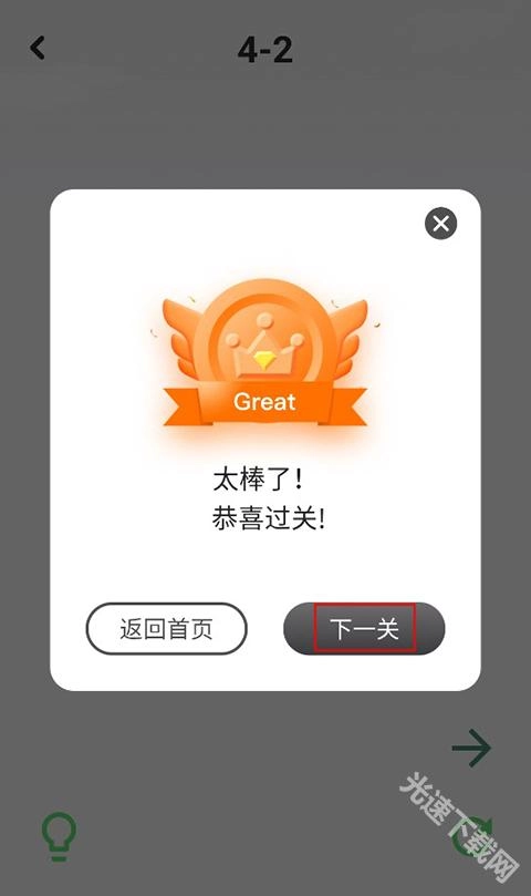 4、当所有白色格子都成功连接起来后,这一关卡就完成了,直接点击下一关就能继续挑战。