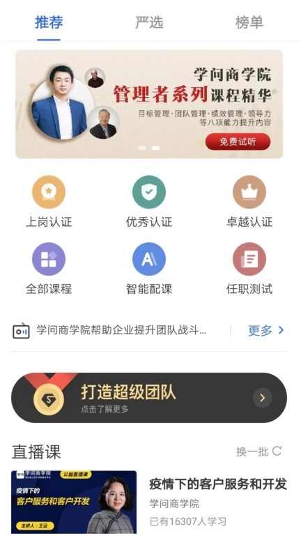 动态课程推荐服务:每个月都会上新30门聚焦热点行业的课程;可视化数据看板功能:能够实时监测200多项团队学习相关指标;智能计划引擎系统:可以实现千人千面的个性化学习任务分配;组织架构沙盘工具:支持对企业不同发展阶段的培训方案进行模拟规划。