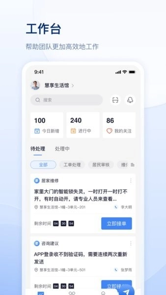善数管理是面向物业管理人员打造的智能办公平台,借助数字化方式提高日常工作效率。它融合了工单调度、车辆访客管理、物品寄存、人员进出登记等关键功能,助力物业团队完成任务可视化追踪与快速响应;数据统计模块能实时生成服务报表,协助分析业主需求和满意度趋势,使物业管理更精准高效。系统采用简洁直观的界面设计,待办事项自动提醒,支持多端协同操作,显著降低纸质流程与沟通成本,目前已在安卓平台上线,想要提升服务效能的物业团队可免费使用。