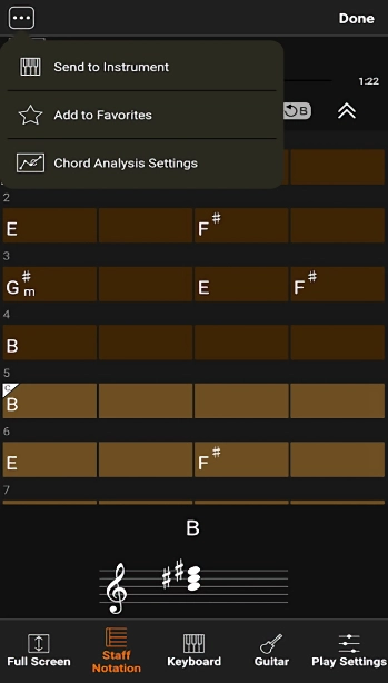 软件运用多重音频处理技术,保障和弦识别的精准度。配备钢琴键盘与吉他指板两种显示模式,契合不同乐器学习者的需求。具备BPM调速和移调功能,能够依据个人情况调整练习的难易程度。编辑功能模块支持用户替换系统推荐的和弦,并可实时试听改编后的效果。
