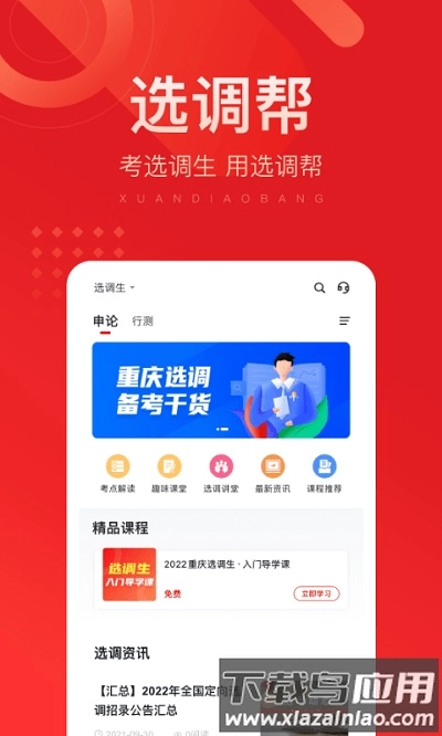 自“选调帮”应用上线以来,已收获数十万用户的广泛认可,成为选调生考试备考群体的首选辅助工具。这款应用是专门针对选调生招录考试打造的,整合了专项练习题库、历年考试真题、配套系列图书以及优质精品课程等资源,旨在为考生提供高效且具有个性化的在线学习培训服务。