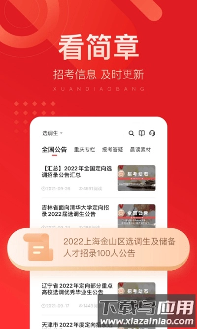 实时更新招录公告和报考指南,全程助力用户规划选调生涯。