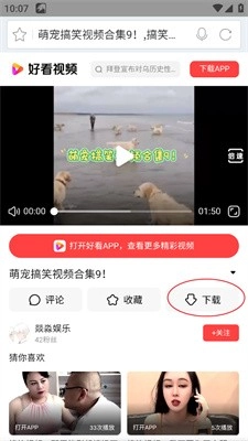 3、进入任意一个网页中观看视频,点击下方的。
