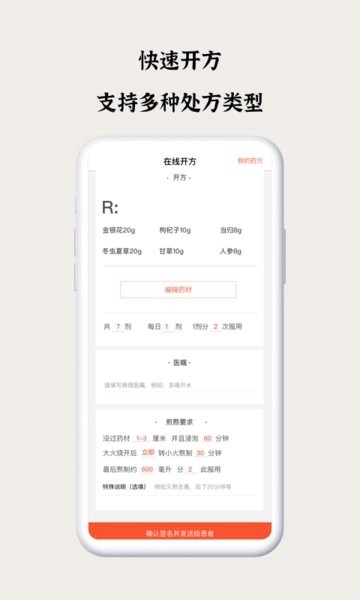 开通图文问诊、电话咨询与面诊诊疗三种服务模式;依托患者评价系统,助力打造名医工作室;通过处方云端存储,有效防止数据丢失;借助药材数据库,辅助医生精准开具处方。