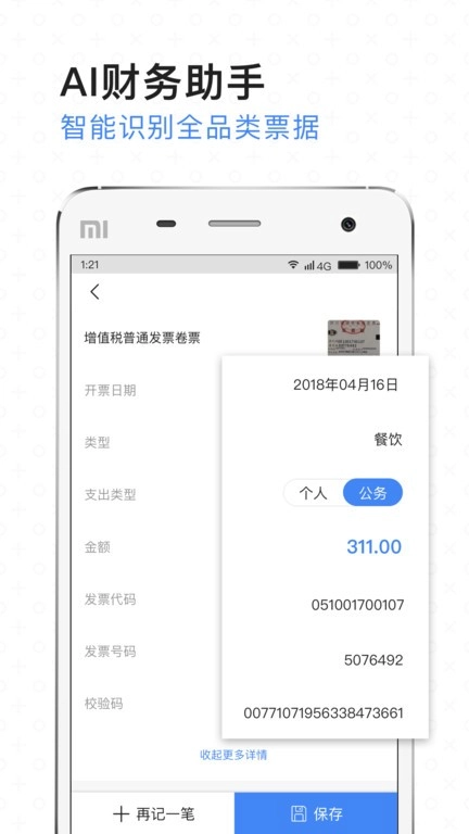 - 拍照即记账:镜头对准发票就能快速识别,哪怕是模糊的出租车票也能轻松读取;