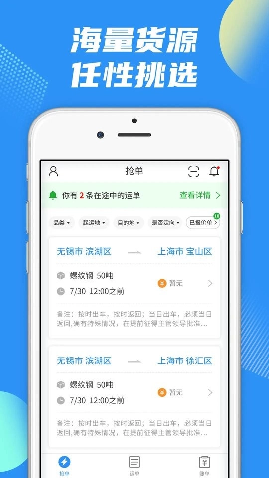 2.平台入驻货主众多,货源充足,订单持续更新;
