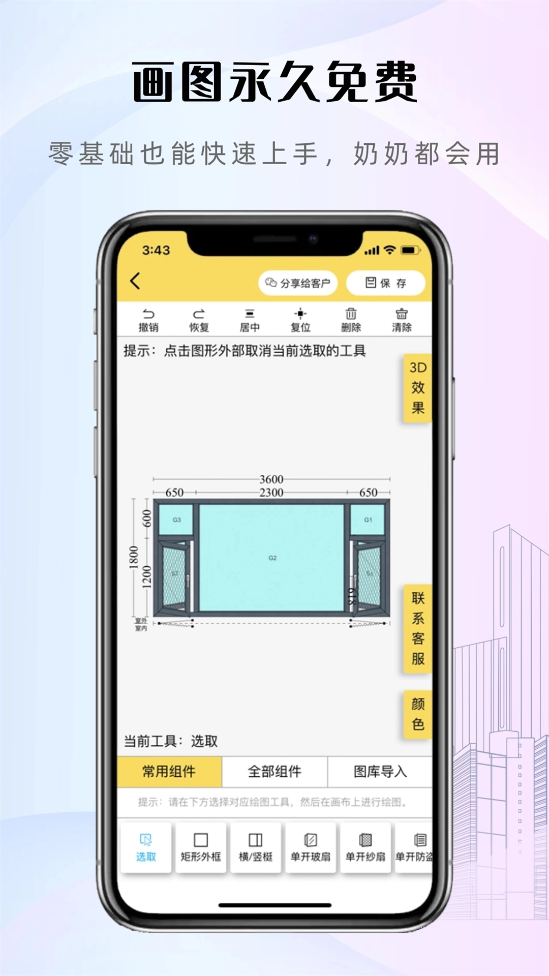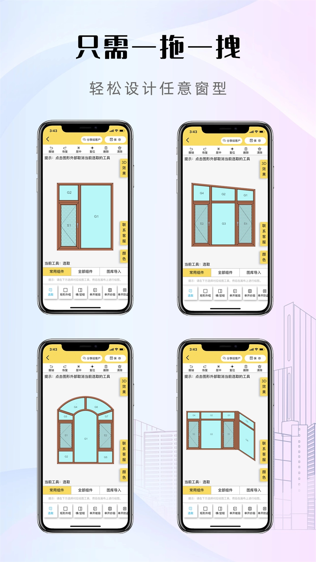 这是一款面向装修从业者的门窗设计专用软件,配备了丰富的设计工具与实用功能,不仅能让用户自由进行窗户的个性化设计与调整,还支持作品分享和订单管理。软件海量绘图工具、素材资源及基础模板,旨在为用户构建一个智能高效的制图环境。此外,软件具备一键将门窗型材图纸转化为3D效果的功能,助力经销商完善图纸信息,提升设计方案的成交速度。