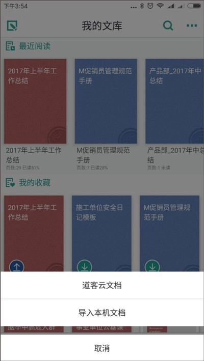 2、之后,在下方菜单栏里选择导入【道客云文档】。