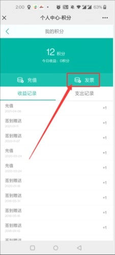 3、点击“发票”按钮。
