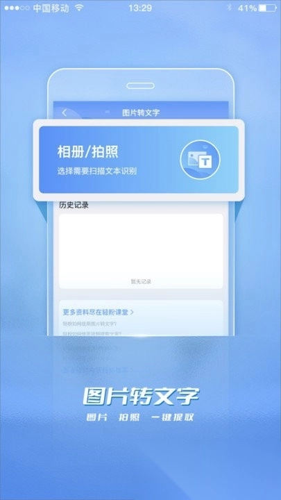 3.图片转文字识别,支持拍照或上传图片提取文字;