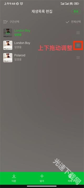 3、然后再依次上下拖动调整你想要歌单的顺序;