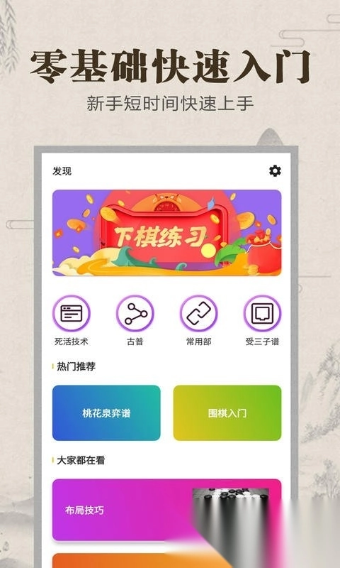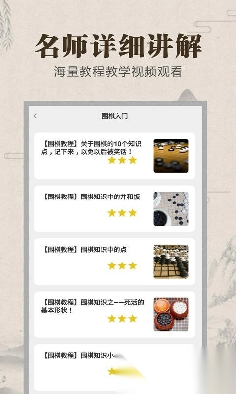 这款应用包含了从入门到精通的围棋教学资源,能让用户学习各类围棋战术。不仅可以开展日常训练,还能进行人机对弈或者与真实玩家匹配对战,通过实际操作来提升学习的趣味性和实用性。