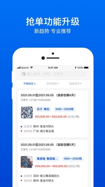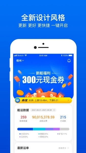 平台已和多家企业达成合作,每日都会更新海量真实货源;船主能够自主筛选出发地、目的地以及报价信息,抢单成功后可全程追踪运输进度;新用户注册就能获得300元现金红包,而且每单都有额外补贴。