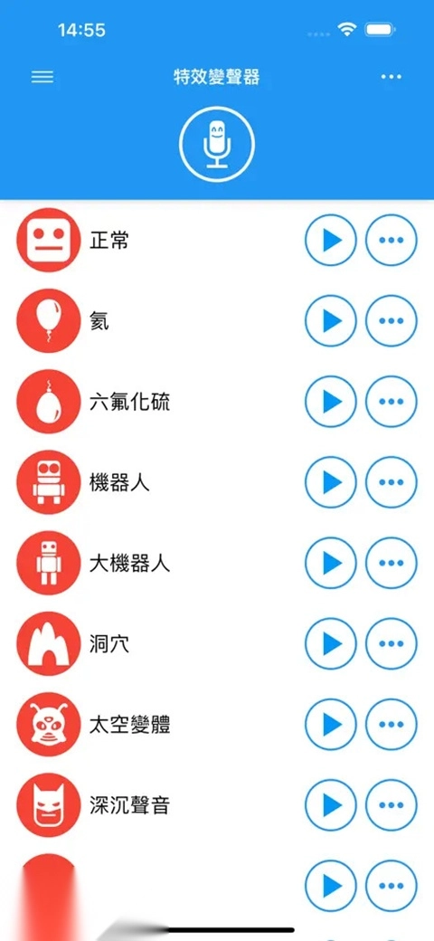 变声功能:包含男变女、女变男、机器人音效、自定义语音等多种不同的声音变换效果。