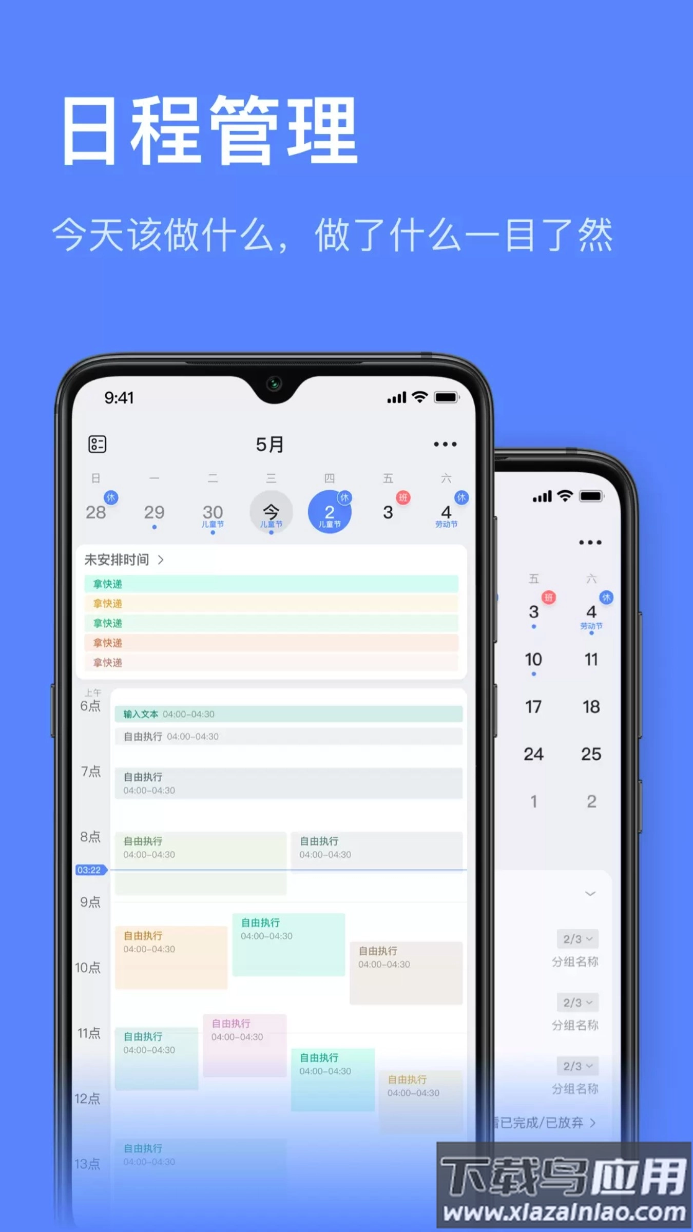 4. 切换到日历视图能总览每日安排,不同颜色可区分任务类型,操作简单直观。