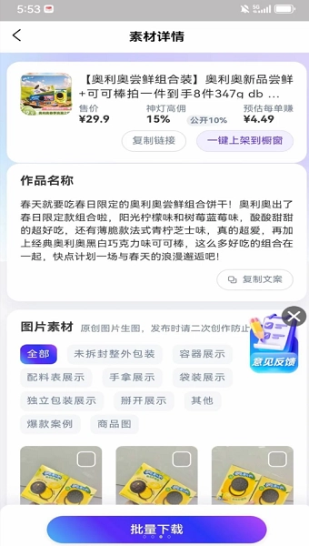 - 场景化推荐:依据用户过往的偏好倾向,自动匹配合适的服装、美食、家居等垂直领域的素材包;