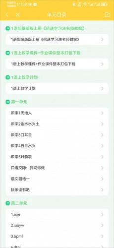 4、选择完毕后,系统会跳转至该课本的单元目录页面,你可自由挑选任一单元章节的资料。