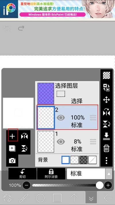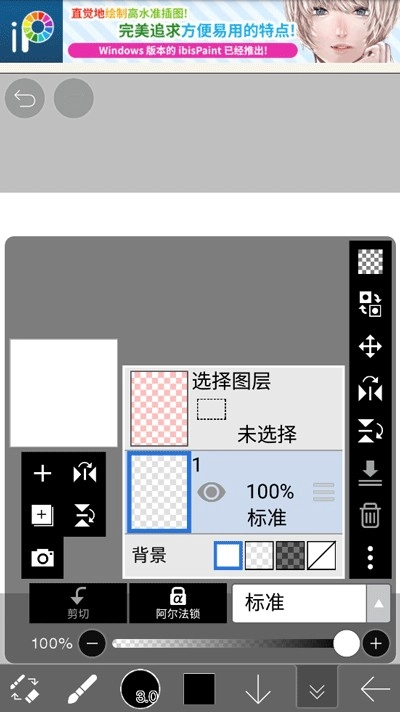 2、画布创建成功后在操作页面新建一个图层1。