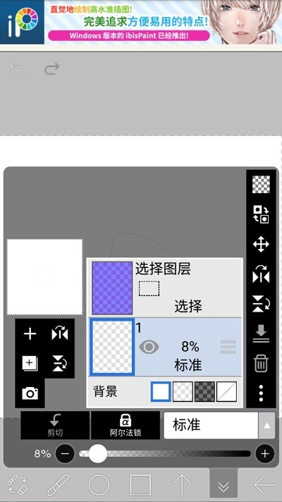 4、图层1画好后,点击图层,将透明度调整到8%。
