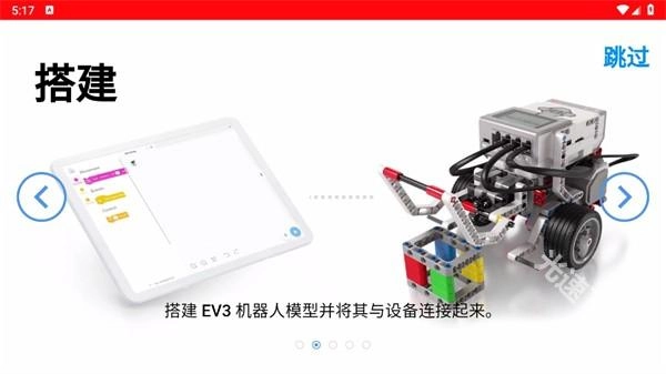 2、搭建 EV3 机器人模型并将其与设备连接起来;