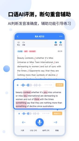 模拟考试场景下的口语测评,运用和正式考试一致的评分算法;