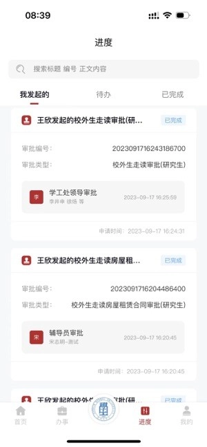 每项申请都能清晰展示当前所处的处理环节以及对应的负责人,若超出规定时间仍未完成审批,系统会自动发起催办。历史记录会按照月份进行分类整理归档,并且支持通过关键词进行检索查询。