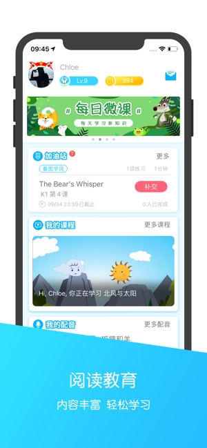 独创“学习-练习-测试”三阶教学模式;配音作品能自动生成进步曲线;家长端可设定每日学习目标;教师端具备自定义组卷功能;班级排行榜呈现多种学习数据。
