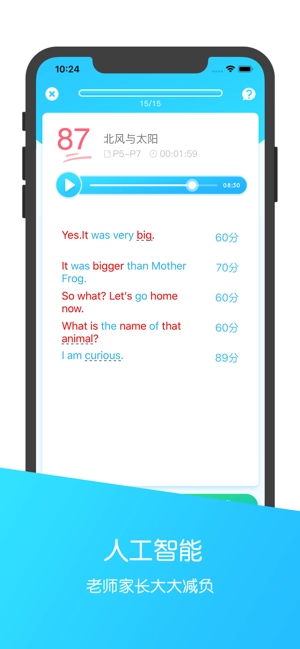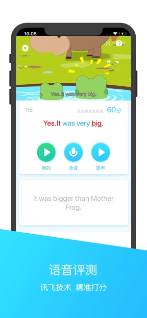依托科大讯飞语音评测技术,能实时反馈发音精准度;通过动画故事再现寓言场景,实用对话占比达95%;具备角色配音功能,创作的作品可分享到社交平台;积分排名机制助力激发学习动力,AI还能自动生成学情报告。